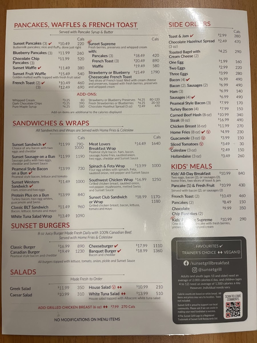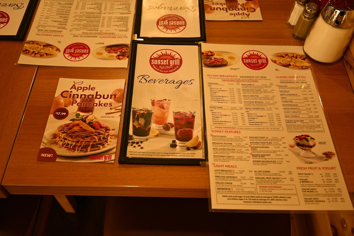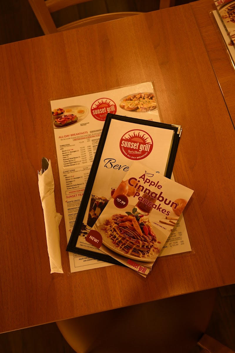 Overall, Sunset Grill’s menu is diverse and offers a little bit of everything, from hearty breakfasts to lighter lunches and creative, mouthwatering features. Whether you’re in the mood for something familiar or are looking to try something new, the variety of flavors and dishes available ensures there’s something for everyone to enjoy.